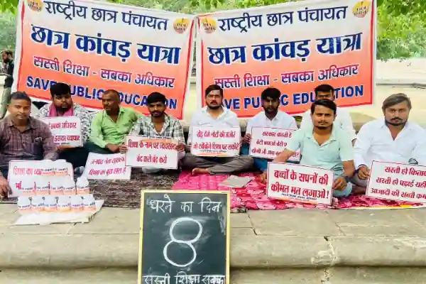Gonda News छात्र नेता व राष्ट्रीय छात्र पंचायत के राष्ट्रीय अध्यक्ष शिवम पाण्डेय के नेतृत्व में लखनऊ के इको गार्डन में निजी स्कूलों की मनमानी फीस के विरोध में अनिश्चितकालीन धरना आठवें दिन भी जारी रहा। प्रदर्शनकारियों ने समोसा और किताब के प्रतीकात्मक प्रदर्शन से यह संदेश दिया कि संसद में समोसे पर चर्चा होती है, लेकिन किताबों की लूट पर नहीं। शिवम पांडेय ने कहा कि शिक्षा राष्ट्र की नींव है, इस पर गंभीर चर्चा होनी चाहिए।