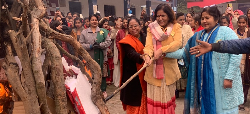 गोंडा। सरस्वती देवी नारी ज्ञानस्थली पीजी कालेज में लोहड़ी के पर्व पर महाविद्यालय के कर्मचारियों एवं छात्राओं द्वारा विभिन्न कार्यक्रम आयोजित हुए। कार्यक्रम का शुभारम्भ महाविद्यालय की प्राचार्या डा. आरती श्रीवास्तव एवं व्यवस्थापिका डा. आनन्दिता रजत ने लकड़ी की आग में नये अनाज, मंगफली, लावा एवं रेवड़ी डालकर किया। तत्पश्चात अंग्रेजी की विभागाध्यक्ष डा. हरप्रीत कौर ने लोहड़ी मनाये जाने की कहानी विस्तार से सुनाई। महाविद्यालय की उप प्राचार्या डा. नीलम छाबड़ा के निर्देशन में महाविद्यालय की छात्राओं ने पंजाबी बोल एवं गीतों पर मनमोहक नृत्य प्रस्तुत किये, जिसमें महाविद्यालय के शिक्षक, शिक्षिकाओं एवं कर्मचारियों ने भी पंजाबी गीतों पर नृत्य करके धमाल मचाया। कार्यक्रम में मुख्य रूप से महाविद्यालय की प्राचार्या डा. आरती श्रीवास्तव, व्यवस्थापिका डा. आनन्दिता रजत एवं नियन्ता श्रीमती रंजना बन्धु ने समस्त लोगों को लोहड़ी की बधाई दी। कार्यक्रम में मुख्य रूप से डा. सीमा श्रीवास्तव, डा. आशू त्रिपाठी, डा. मौसमी सिंह, डा. नीतू सिंह, श्रीमती गीता श्रीवास्तव, डा. रश्मि द्विवेदी, डा. अमिता श्रीवास्तव, सुनीता मिश्रा, किरन पाण्डेय, अनु उपाध्याय, सरिता पाण्डेय, कंचन पाण्डेय, अर्जुन चौबे, शुबेन्दु वर्मा, चन्द्रपाल, अतुल तिवारी, हिमांशी, श्रद्धा सिंह, डा. कुमकुम सिंह, डा. विमला, डा. सुषमा पाण्डेय, नेहा जायसवाल तथा समस्त ज्ञानस्थली परिवार उपस्थित रहा।