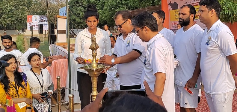अपने सम्बोधन में जिलाधिकारी ने कहा कि प्रधानमंत्री के निर्देशन पर आज 8वें अंतर्राष्ट्रीय योग दिवस का आयोजन पीएसी ग्राउंड में किया गया, जिसमें भारी संख्या में लोगों ने भाग लिया। इस कार्यक्रम को सफल बनाने के लिए जिन भी लोगों ने अपना योगदान दिया, उन सभी को धन्यवाद देता हूं। उन्होंने कहा कि योग को लोग अपने जीवन में दिनचर्या के रूप में शामिल करें, जिससे हम पूर्णतया स्वस्थ रह सकें और हम स्वस्थ रहकर समाज में अपना पूर्ण योगदान दे सकें। इस मौके पर योग प्रशिक्षक सुधांशु द्विवेदी ने कहा कि भारत के लिए विश्व योग दिवस एक बड़ी उपलब्धि है। योग गुरु के तौर पर भारत विश्व में योग का प्रसार प्रचार कर रहा है। योग हमारे शरीर मन एवं आत्मा तीनों पर कार्य करता है और हमें आत्म निष्ठ व पूर्ण पराक्रमी बनाता है। उन्होंने बताया कि आयुष विभाग तत्वाधान में आयोजित योग शिविर में करीब 10 हजार योग साधकों ने योग का अभ्यास किया। कार्यक्रम के अंत में बाल योगियों, आशीष गुप्ता, गौरव गुप्ता, अनिल भट्ट, आंचल, श्रद्धा सुमन श्रीवास्तव, माही, अभिषेक, सलोनी, अनामिका आदि के द्वारा विशेष एडवांस आसनों व स्टिक योग के कठिन आसनों का दिव्य प्रदर्शन भी किया गया। कार्यक्रम में डॉ शिवाजी सिंह, डॉ शिव प्रताप वर्मा, डा. विष्णु, ओम प्रकाश सिंह, अखिलेश, ओम प्रकाश पांडेय सहित अन्य चिकित्साधिकारी अधिकारियों एवं योग प्रशिक्षकां का विशेष सहयोग रहा।