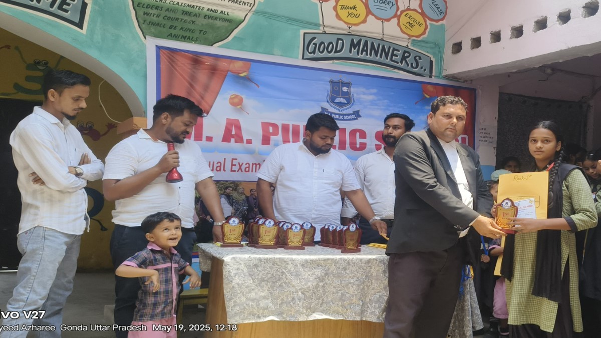 गोंडा। एम ए पब्लिक स्कूल में एक गरिमामय समारोह के दौरान छात्रों को वार्षिक परीक्षा में बेहतर प्रदर्शन के लिए अंकपत्र, प्रमाणपत्र, ट्रॉफी और मैडल प्रदान कर सम्मानित किया गया। इस आयोजन में छात्रों के चेहरों पर आत्मविश्वास और प्रसन्नता साफ दिखाई दी। कार्यक्रम की अध्यक्षता विद्यालय के प्रबंधक मोहम्मद सईद ने की, जबकि संचालन का उत्तरदायित्व विद्यालय की प्रधानाचार्या निशा खान ने निभाया।