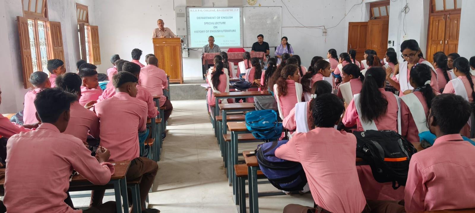 बलरामपुर। जिले के एमएलके पीजी कॉलेज के अंग्रेजी विभाग में अंग्रेजी साहित्य के इतिहास पर विशेष व्याख्यान का आयोजन किया गया। जिसमें स्नातक एवं परास्नातक के विद्यार्थियों ने हिस्सा लेकर अंग्रेजी साहित्य के इतिहास की विशेष जानकारी प्राप्त की।