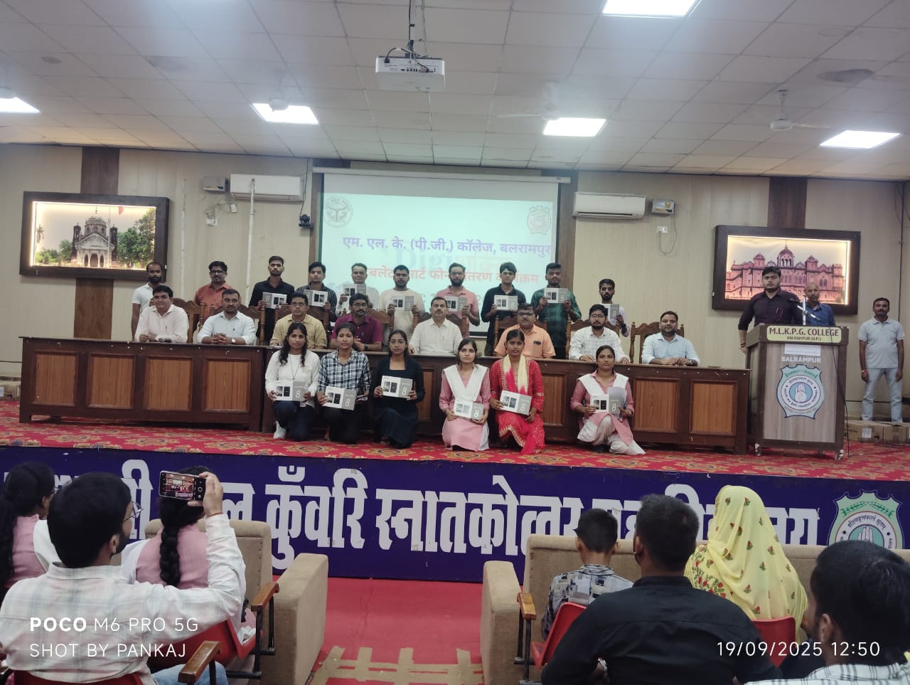 बलरामपुर। MLKPG College में शुक्रवार को स्वामी विवेकानंद युवा सशक्तिकरण योजना के अंतर्गत स्नातक व परास्नातक के उत्तीर्ण लगभग 400 छात्र-छात्राओं को डिजिटल रूप से सशक्त बनाने के उद्देश्य से टैबलेट वितरित किया गया। कार्यक्रम का शुभारंभ करते हुए महाविद्यालय प्राचार्य प्रो जेपी पाण्डेय ने कहा कि उत्तर प्रदेश देश में सबसे बड़ी युवा शक्ति वाला राज्य है। ऐसे में प्रदेश की युवा शक्ति को सशक्त बनाने और उसे वर्तमान व भविष्य की जरूरतों के अनुसार कौशल प्रदान करने की दिशा में सरकार ने कई कदम उठाए हैं। इस कड़ी में स्वामी विवेकानंद सशक्तिकरण योजना बेहद प्रभावी साबित हो रही है।