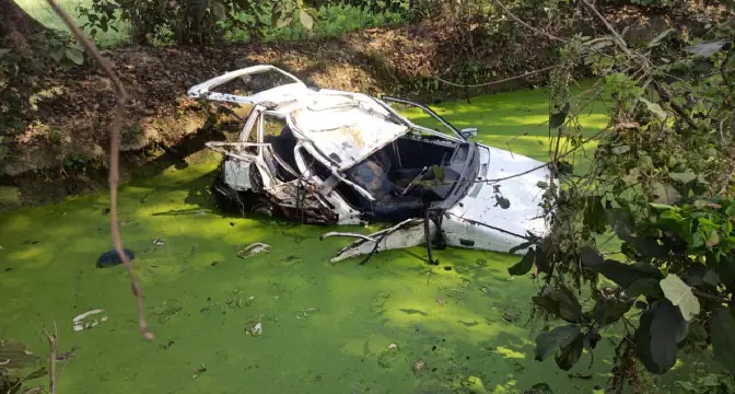 लखनऊ। उत्तर प्रदेश के लखीमपुर खीरी में रविवार की शाम बड़ा हादसा हो गया। यहां चलती आल्टो कार का पहिया निकल गया। पहिया निकलते ही कार अनियंत्रित होकर पेड़ से जा टकराते हुए तालाब में जा गिरी। हादसे में दो सगे भाइयों समेत चार लोगों की मौत हो गई। हादसे की जानकारी होते ही आसपास के लोग मौजूद पहुंचे और पुलिस को सूचना दी। पुलिस ने मौके पर पहुंचकर शवों को कार से बाहर निकाला। हादसा फरधान थाना क्षेत्र के ओदरहना गांव के पास हुआ। बताया जाता है कि लखीमपुर की ओर से आ रही अल्टो कार अचानक से अनियंत्रित हो गई और हाईवे के किनारे के तालाब में जा गिरी। हादसे की सूचना पर पहुंची पुलिस ने किसी तरह कार में फंसे घायलों को निकाला और उनको जिला अस्पताल भेजा गया। इंस्पेक्टर फरधान राकेश सिंह यादव ने बताया कि कार में पांच लोग सवार थे। घटनास्थल पर ही दो युवकों की मौत हो गई थी। तीन घायलों को अस्पताल भेजा गया। इनमें से एक की जिला अस्पताल और एक युवक की मौत लखनऊ ले जाते वक्त रास्ते में हो गई। इंस्पेक्टर राकेश सिंह यादव ने बताया कि मृतकों की शिनाख्त दो सगे भाइयों अनुज (21) पुत्र संत कुमार मिश्र, विवेक उर्फ तनु (18) पुत्र संत कुमार मिश्र, हिमांशु (19) पुत्र राजकुमार व विकास (18) पुत्र सरोज के रूप में हुई है। सभी मृतक मितौली थाना क्षेत्र के भीखमपुर गांव के निवासी और आपस में रिश्तेदार हैं। हादसे में जख्मी अमन मिश्र (19) पुत्र पप्पू मिश्र निवासी लालपुर थाना मितौली जख्मी है। उसको भी लखनऊ रेफर कर दिया गया है। पुलिस के मुताबिक, हादसा कार का पहिया निकल जाने के कारण यह हादसा हुआ है।